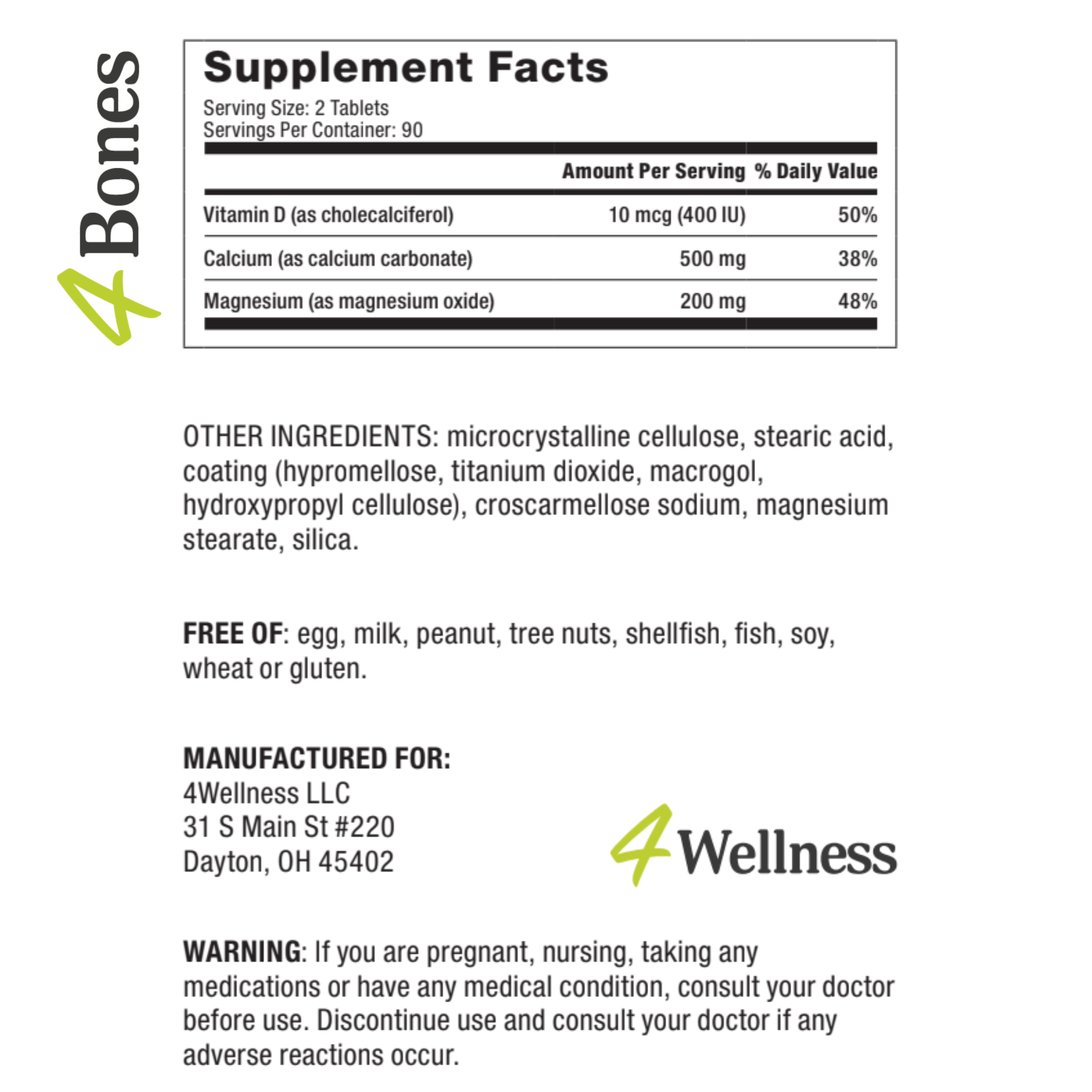 • 4Bones is a high-quality evidence-based wellness product that addresses bone health and low levels of calcium.